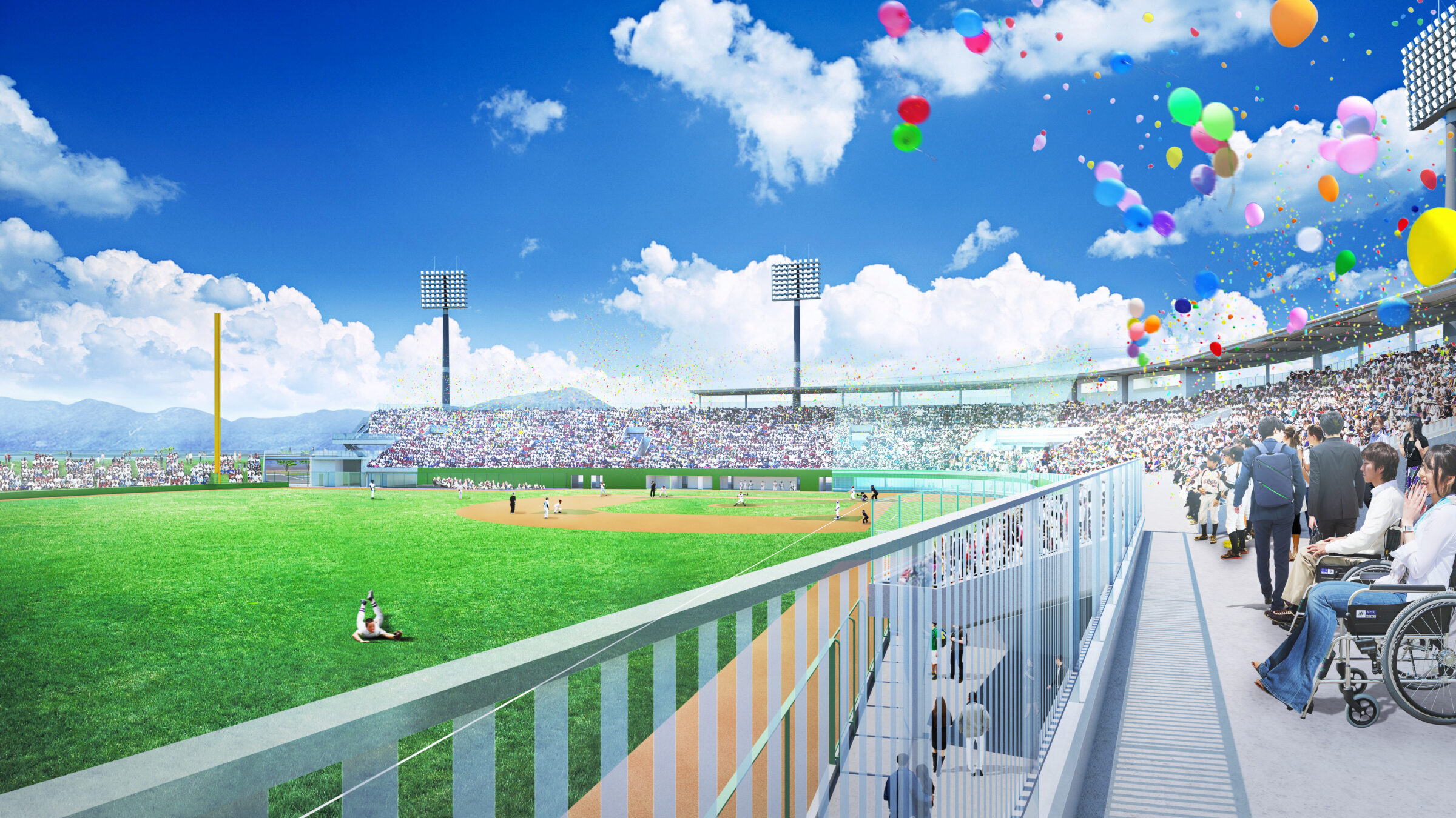 野球場周囲車いす駐車場