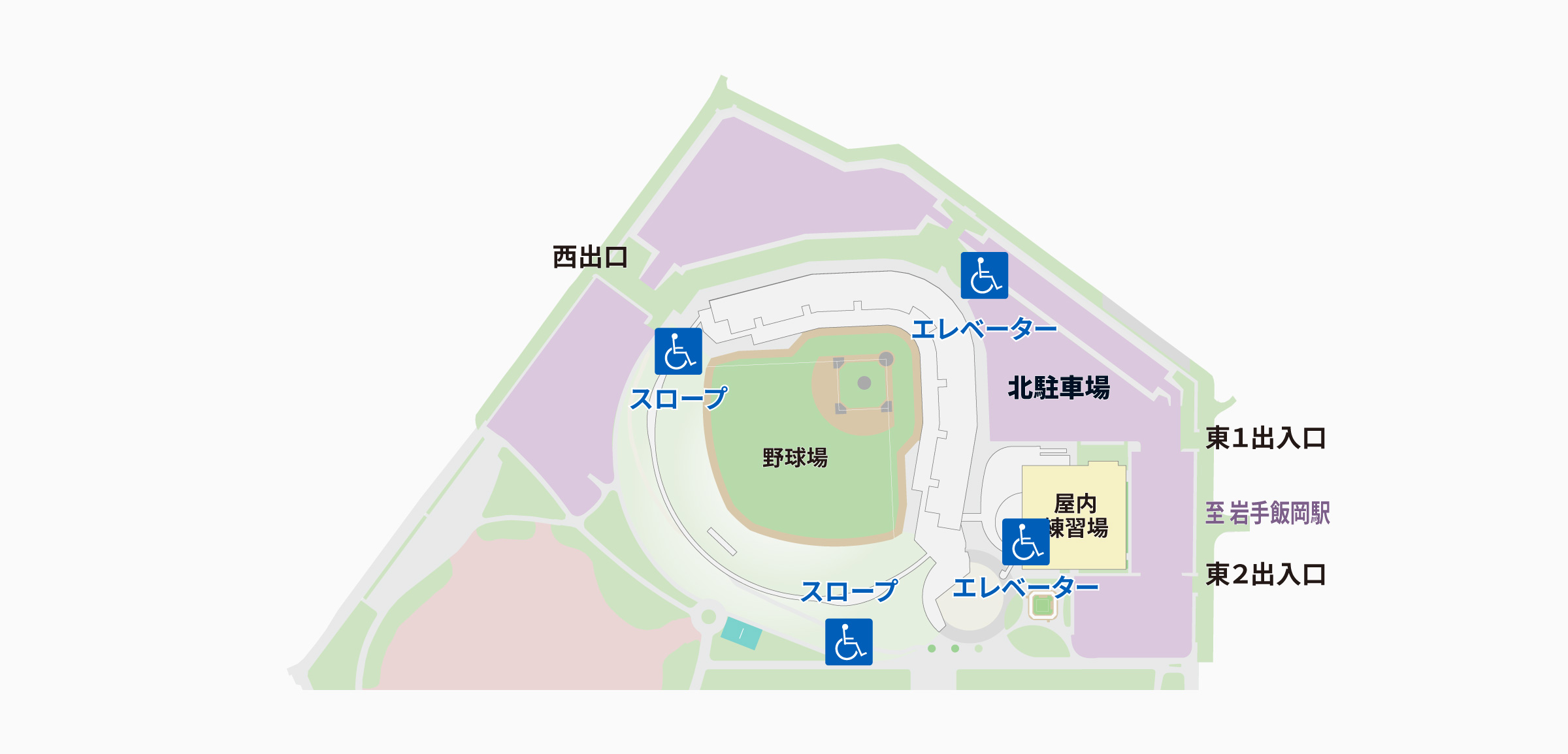 また、レフト側・ライト側に緩やかな傾斜のスロープを設置し、車いすやベビーカーの方もスムーズに外野スタンドに入場できます。