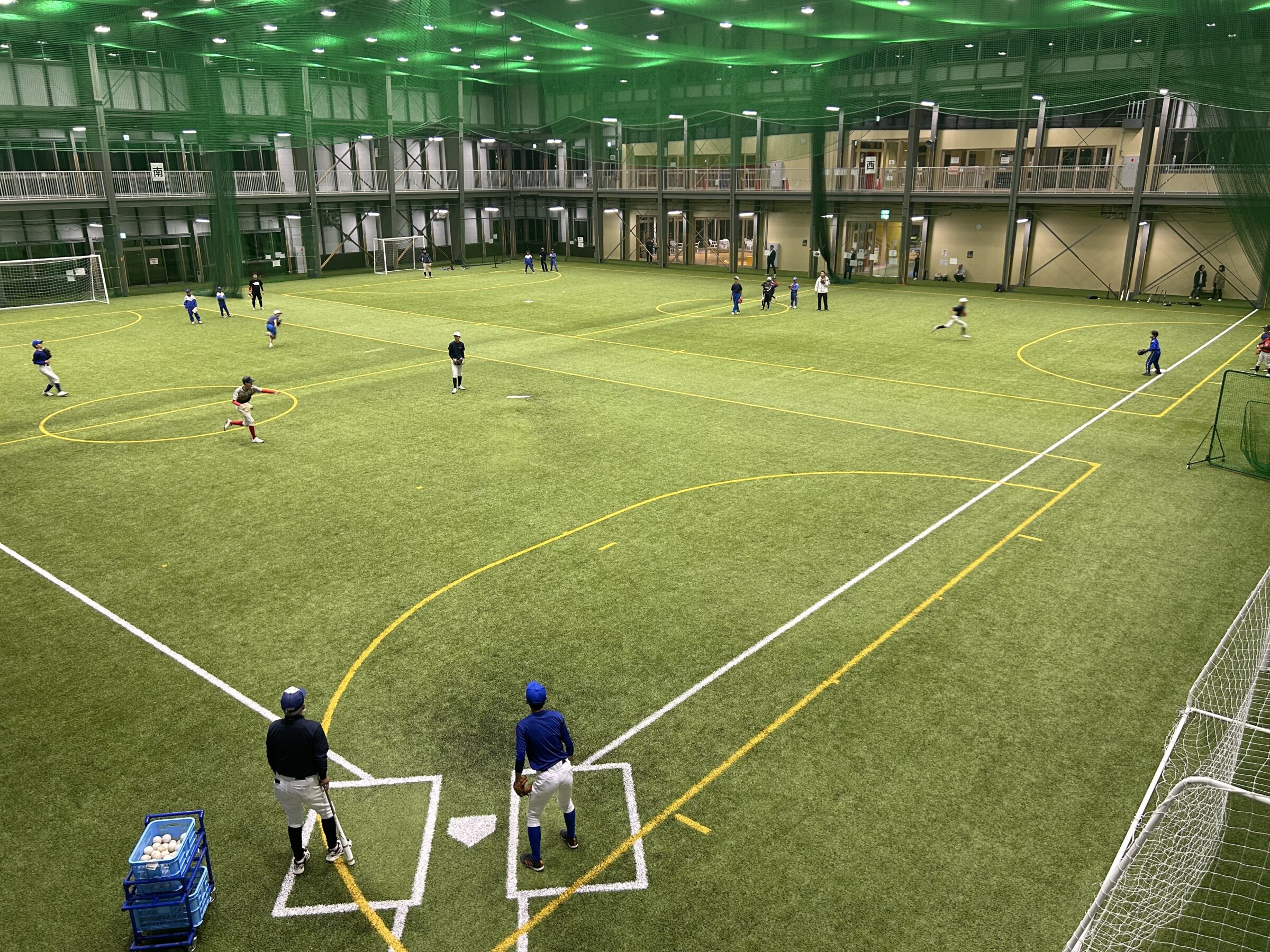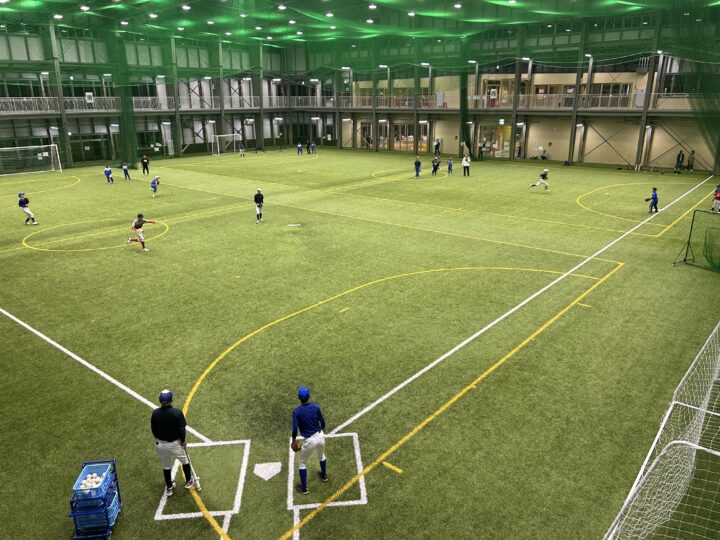 屋内練習場棟は、50m×50m全面人工芝のフィールドのほか、1周約200mのランニングコース、275㎡の広さを誇るトレーニングルーム(ボルダリング、人工芝トレーニングゾーン併設)、休憩ロビー、キッチンカウンターと上部がネット遊具になったキッズボルダリングなど、県民・市民の日常的な活動拠点としての機能を有しています。