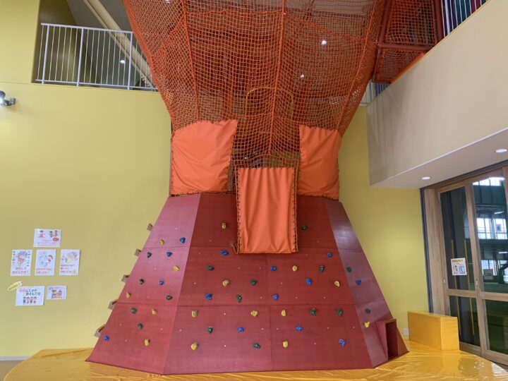 キッズボルダリングは、ボルダリングとネット遊具がつながった挑戦遊具です。