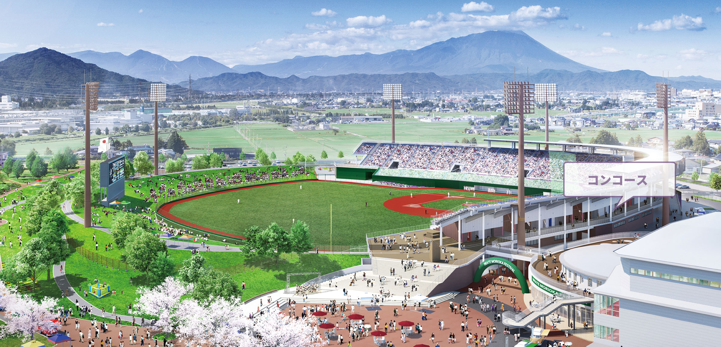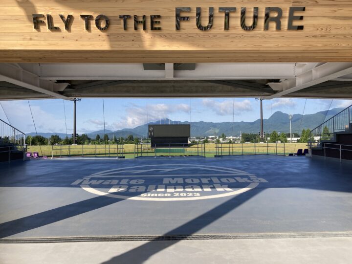 3塁側の壁面カラーは「陸前高田ゆめブロッサム」