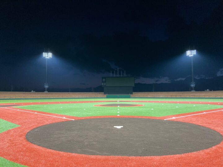 メジャーリーグ16球場で採用され、明るさのムラがなく選手へのまぶしさを抑制する高性能LEDナイター照明。